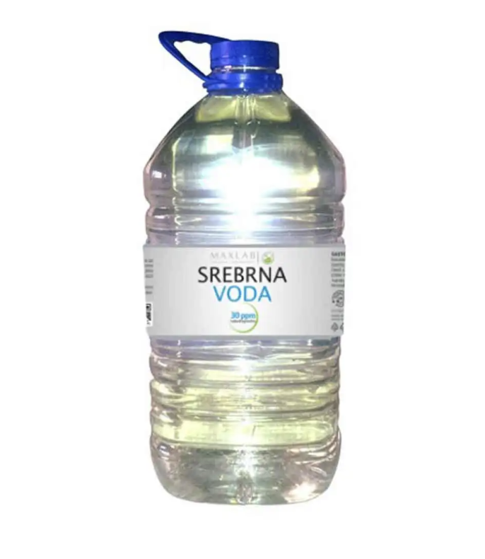 Maxlab Koloidno Srebro (koloidna srebrna voda) koncentracije 30 ppm (mg/L) dostupno je u velikom pakiranju od 5000 ml u praktičnom plastičnom balonu.